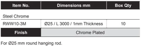 25mm Diameter Round Wardrobe Rail (10/Box)